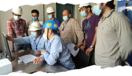 ▲用專業(yè)贏得信賴,海外某項目現(xiàn)場,制氫設(shè)備工程部員工加班加點開展設(shè)備調(diào)試,指導(dǎo)工作人員熟悉設(shè)備操作。圖為技術(shù)人員現(xiàn)場開展技術(shù)講解培訓(xùn)。