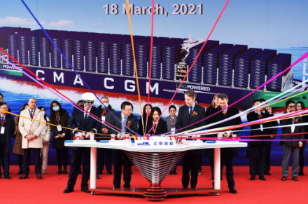 2021年1月8日,滬東中華為達(dá)飛集團(tuán)建造的23000TEU超大型雙燃料集裝箱船“達(dá)飛·里沃利”號(hào)命名。1月20日,“達(dá)飛·里沃利”號(hào)在長(zhǎng)興島交付。