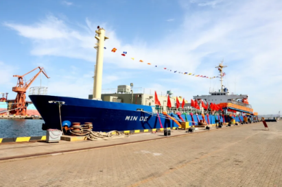 2020年,中國(guó)船舶集團(tuán)旗下大船集團(tuán)將散貨船改裝而成的“民德”號(hào)交付。這是全球首制、具有完全自主知識(shí)產(chǎn)權(quán)的舷側(cè)開(kāi)孔式養(yǎng)殖工船,具有魚(yú)類養(yǎng)殖、餌料加工、活魚(yú)運(yùn)輸?shù)裙δ?。交船的同時(shí),大船集團(tuán)與東方漁業(yè)簽約10+8艘大型養(yǎng)殖工船項(xiàng)目。
