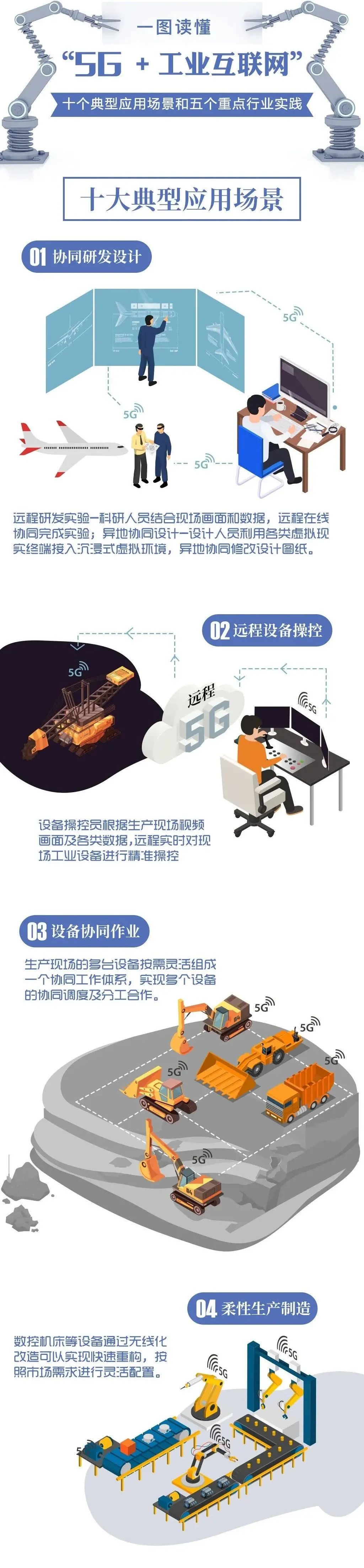 工業(yè)和信息化部正式發(fā)布《關(guān)于發(fā)布“5G+工業(yè)互聯(lián)網(wǎng)”十個(gè)典型應(yīng)用場(chǎng)景和五個(gè)重點(diǎn)行業(yè)實(shí)踐情況的通知》。