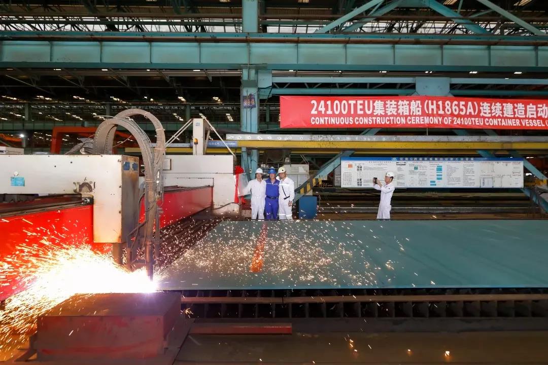 9月22日,滬東中華為地中海航運(yùn)公司建造的24100TEU集裝箱項目2號船連續(xù)建造啟動儀式。