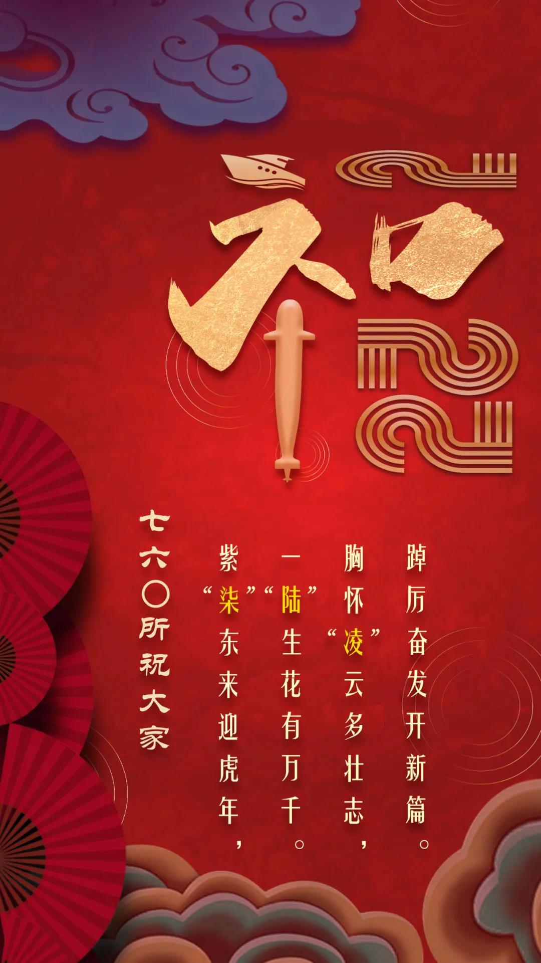 節(jié)日的煙花詮釋喜慶,大紅的燈籠點(diǎn)亮祝福!黃旭華院士作為七一九所典型人物代表,認(rèn)真注視著他為之奉獻(xiàn)一生的艇,也反映了這條戰(zhàn)線上科技工作者們“團(tuán)結(jié)、求實(shí)、創(chuàng)新、奉獻(xiàn)”的工作作風(fēng)。“為君一擊 鵬摶九天”暗藏“一九”二字,反映出七一九所肩負(fù)的責(zé)任之大,使命之重,表達(dá)了軍工人將船舶事業(yè)做大做強(qiáng)的決心。