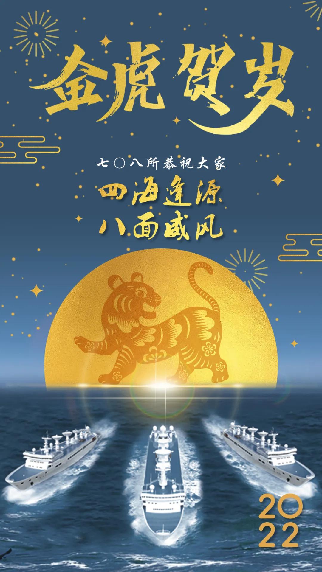 海報(bào)以七〇八所自主研發(fā)設(shè)計(jì)的遠(yuǎn)望號(hào)船隊(duì)、金虎、星空、月亮為元素創(chuàng)作,彰顯祖國浩瀚海疆、無垠星空的安寧祥和。四十余年來,遠(yuǎn)望號(hào)船隊(duì)劈波斬浪,守護(hù)著祖國的花好月圓。從遠(yuǎn)望一號(hào)至遠(yuǎn)望七號(hào),凝結(jié)著幾代中國船舶人的智慧和汗水,堅(jiān)守一方“浮動(dòng)國土”。