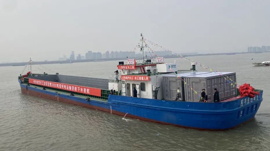 “船聯(lián)1號”由國網(wǎng)江蘇省電力有限公司聯(lián)合相關(guān)部門和企業(yè)共同打造,是長江流域最大載重噸位的電動(dòng)貨船,將電能作為整艘船的唯一能源,實(shí)現(xiàn)零排放、低噪音、無污染。