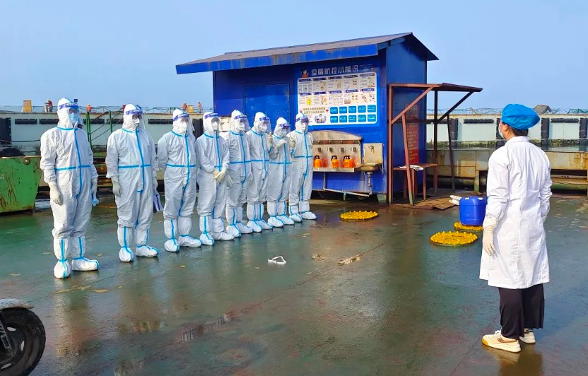 在每一艘船舶即將駛向交付目的地時(shí),中船廣西防疫辦專門(mén)組織專業(yè)的醫(yī)護(hù)人員對(duì)參與送船的員工進(jìn)行防護(hù)培訓(xùn),并開(kāi)展應(yīng)急演練,同時(shí)要求船舶靠岸時(shí)統(tǒng)一穿著防護(hù)服,無(wú)指令不得上岸。此外,該公司還安排專車(chē)對(duì)送船員工進(jìn)行點(diǎn)對(duì)點(diǎn)接送,杜絕一切與外界接觸的可能。