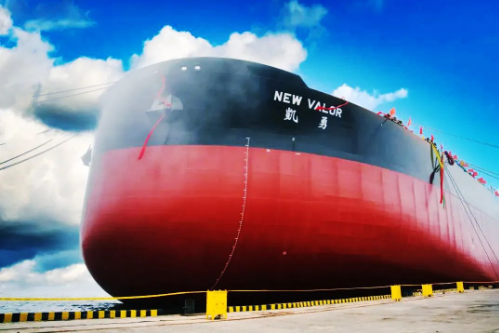 6月18日,中國(guó)船舶集團(tuán)旗下大船集團(tuán)為招商輪船建造的30萬(wàn)噸VLCC 98號(hào)船命名交工。