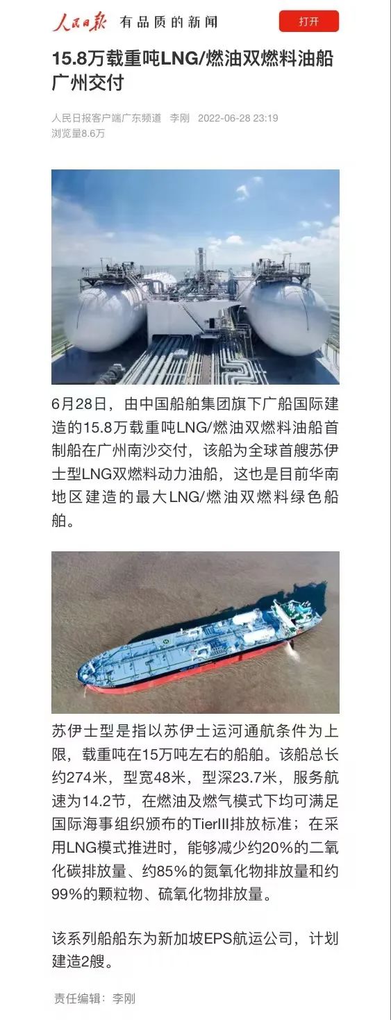 2022年5月30日交付,標(biāo)志著廣船國際成功攻克LNG雙燃料動力船舶的研發(fā)和建造技術(shù),成為了華南地區(qū)首家自主研發(fā)和建造LNG雙燃料成品油船的船企。