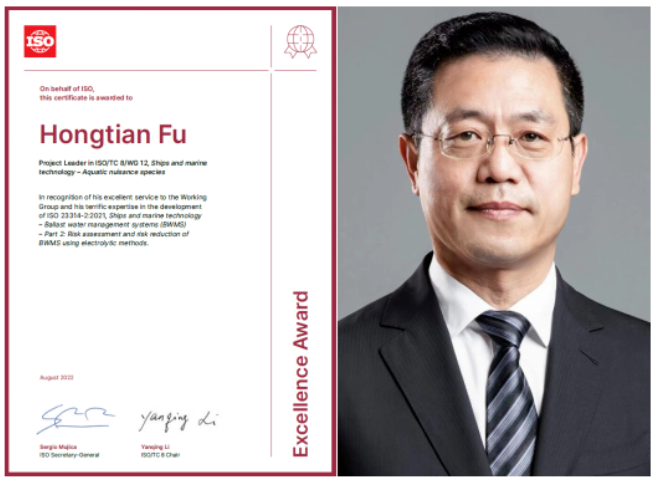 ISO卓越貢獻(xiàn)獎(jiǎng)旨在表彰在上一年度ISO國際標(biāo)準(zhǔn)制修訂工作中作出突出貢獻(xiàn)的專家、項(xiàng)目負(fù)責(zé)人或工作組召集人。此次頒獎(jiǎng)表彰了付洪田在ISO 23314-2:2021《船舶與海洋技術(shù)—壓載水管理系統(tǒng)—電解法壓載水管理系統(tǒng)的風(fēng)險(xiǎn)評(píng)估與風(fēng)險(xiǎn)降低》國際標(biāo)準(zhǔn)研制作出的貢獻(xiàn)。