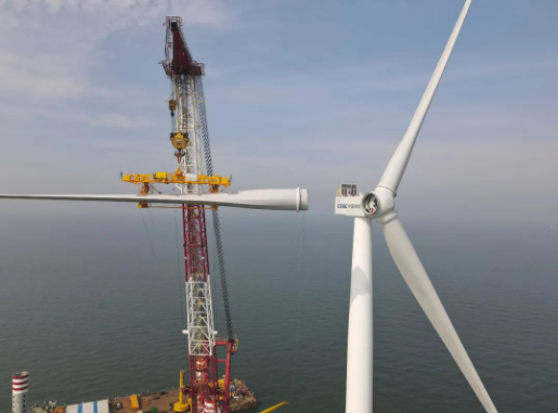 中船海裝機(jī)組在山東能源渤中海上風(fēng)電A場址項目進(jìn)行吊裝