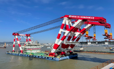 澳氹第四條跨海大橋鋼梁吊裝任務(wù)由“鐵建大橋起1”號(hào)起重船完成。該船由中國船舶集團(tuán)七〇八所研發(fā)設(shè)計(jì),一期“L”型起重臂架為澳氹四橋工程專屬設(shè)計(jì)和打造,具有完全自主知識(shí)產(chǎn)權(quán)。