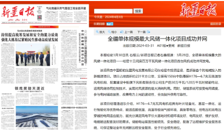 近日,中國船舶集團(tuán)旗下中船科技子公司中船風(fēng)電和哈密國投聯(lián)合開發(fā)的新疆哈密百萬千瓦風(fēng)儲一體化項目首臺風(fēng)機(jī)成功并網(wǎng)發(fā)電,央視《新聞聯(lián)播》、新華網(wǎng)和《新疆日報》等紛紛關(guān)注報道。
