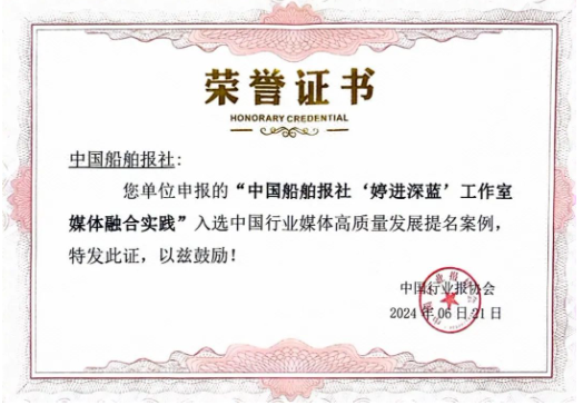中國船舶報社“婷進深藍”工作室,媒體融合實踐獲評中國行業(yè)媒體高質(zhì)量發(fā)展提名案例。