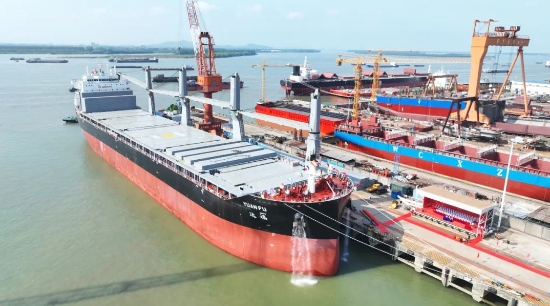 日前,中國船舶集團旗下中船貿(mào)易聯(lián)合北海造船,為達飛輪船建造的第五艘5500TEU集裝箱船命名交付。