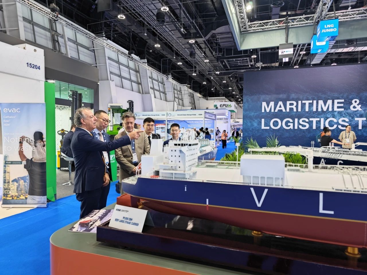 在此次展會(huì)上,江南造船展出了自主研發(fā)設(shè)計(jì)的17.5萬立方米液化天然氣(LNG)運(yùn)輸船、目前世界上最大艙容的99000立方米超大型乙烷運(yùn)輸船(VLEC)以及93000立方米超大型液氨運(yùn)輸船(VLAC)等船型,憑借自身優(yōu)勢(shì)及特色展臺(tái)布置吸引了眾多油氣公司、船東、船級(jí)社、中間商、船廠、供應(yīng)商等駐足觀看,同時(shí)也與其進(jìn)行了廣泛和深入的交流。值得一提的是,中國駐阿聯(lián)酋大使一行也到訪江南造船展臺(tái),詳細(xì)詢問江南造船的產(chǎn)品特點(diǎn)、技術(shù)和建造優(yōu)勢(shì)。