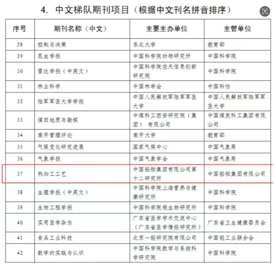 《熱加工工藝》能夠榜上有名,也是中國船舶行業(yè)與中國船舶集團為學術(shù)研究陣地建設貢獻了強有力的力量。