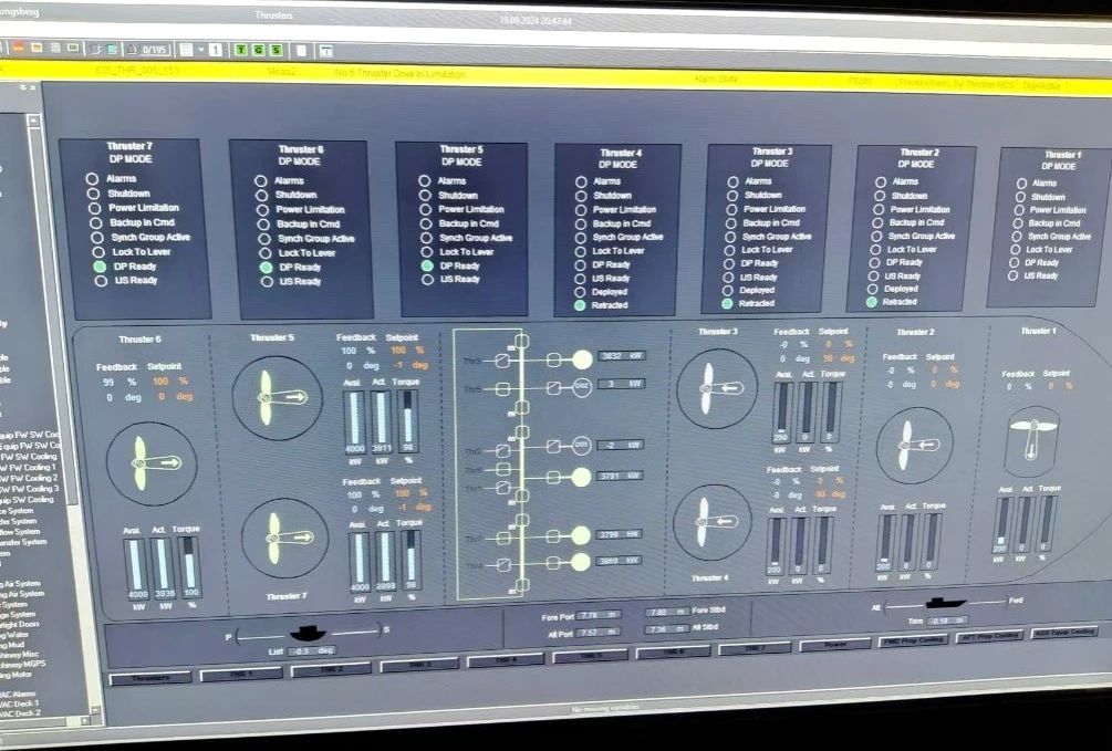 “夢想”號在全球首次同時將蓄能技術(shù)和閉環(huán)電網(wǎng)應(yīng)用于DP-3級動力定位系統(tǒng),不僅能為海上鉆探作業(yè)提供強(qiáng)有力的保障,而且使全船綜合能耗降低15%。