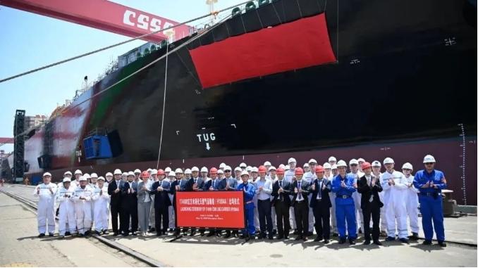 17.4萬立方米LNG運輸船“遠海奮進”號(Ocean Inspiration)在滬東中華新廠區(qū)正式命名。