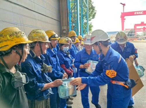 為切實保障員工在夏季生產(chǎn)過程中的安全和健康,大連造船聚焦“幸福中船人”目標(biāo),緊盯員工防暑降溫需求,全方位開展“夏季送清涼”活動,為“一總部三基地”的一線員工送去清涼與關(guān)懷。其中,大連造船所屬大船天津通過為員工設(shè)立“避暑站”、提供避暑餐飲、構(gòu)筑高溫“防護網(wǎng)”等措施,為一線員工遞上夏日“降溫包”。