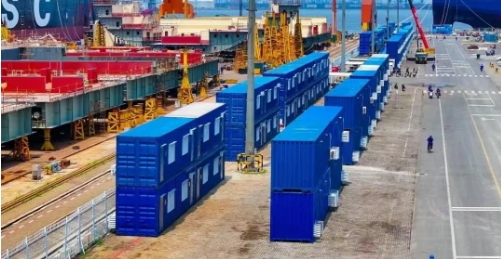 大船天津連續(xù)三年共投入800余萬元,分批購置300個集裝箱式休息室,內(nèi)部安裝空調(diào),為戶外作業(yè)員工搭建“夏能納涼、冬可取暖”的舒適休息場所;在“中船幸福驛站”里,50余臺制冰機在各生產(chǎn)一線不停運轉(zhuǎn),為員工帶來絲絲涼意;食堂在每日午餐后迅速變身“臨時清涼驛站”,公共區(qū)域搭配按需取用的單人涼席,讓員工在餐后盡享片刻清涼;在露天作業(yè)現(xiàn)場配備成片的遮陽棚和冷風(fēng)機,切實為員工撐起高溫下的“防護傘”。