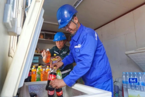 在飲食消暑保障上,大船天津構(gòu)建起全鏈條清涼補給體系。清涼解暑的綠豆湯成為員工餐桌上的“標(biāo)配”,供隨餐飲用;4000余箱瓶裝水以及大批藿香正氣水作為夏季防暑降溫物資配送至各部門、各協(xié)作單位班組;作業(yè)現(xiàn)場的冰柜里,清涼飲品隨時待取;為協(xié)作單位員工送上遮陽草帽,讓清涼關(guān)懷覆蓋每一位一線勞動者。