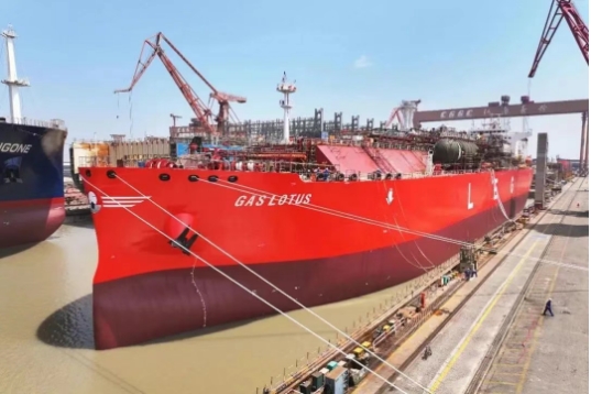 同時出塢的99000立方米超大型乙烷運輸船(VLEC)是該型船2.0版本系列船的第2艘,該船從平臺總段階段實現(xiàn)了機艙三總段的安裝完整性,形成機艙快速成型和舾轉(zhuǎn)涂的穩(wěn)定節(jié)拍,確保后續(xù)碼頭系泊試驗順利開展。