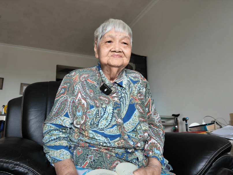 劉暉回憶道,1938年冬天,日軍入侵廣東東莞,她的父母不愿在日軍統(tǒng)治下生活,便帶著全家逃難至香港。1941年12月,日軍進(jìn)攻香港,劉暉一家又隨著難民潮,沿著望不到頭的鐵路,徒步返回家鄉(xiāng)東莞。在顛沛流離中,她的父母相繼離世。“一個(gè)好端端的家,就因?yàn)槿毡镜蹏髁x的侵略,變得家破人亡。”她一字一頓,語氣沉重。