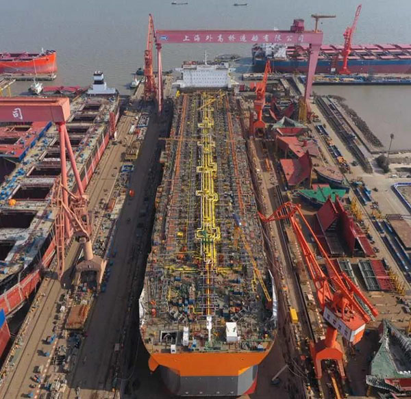 ????3月7日,中國船舶集團所屬外高橋造船建造的一艘海上浮式生產(chǎn)儲油船(FPSO)順利出塢。自2月10日復工復產(chǎn)以來,在不到一個月的時間里,外高橋造船已先后完成了一艘11.4萬噸阿芙拉型成品油輪、一艘21萬噸紐卡斯爾型散貨船和一艘18萬噸好望角型散貨船開工建造,兩艘21萬噸紐卡斯爾型散貨船和一艘18萬噸好望角型散貨船完成試航,一座JU2000E型海上自升式鉆井平臺交付,一艘平臺供應船(PSV)完工簽字,兩艘15.6萬噸蘇伊士型原油輪建造合同簽署等生產(chǎn)節(jié)點。
