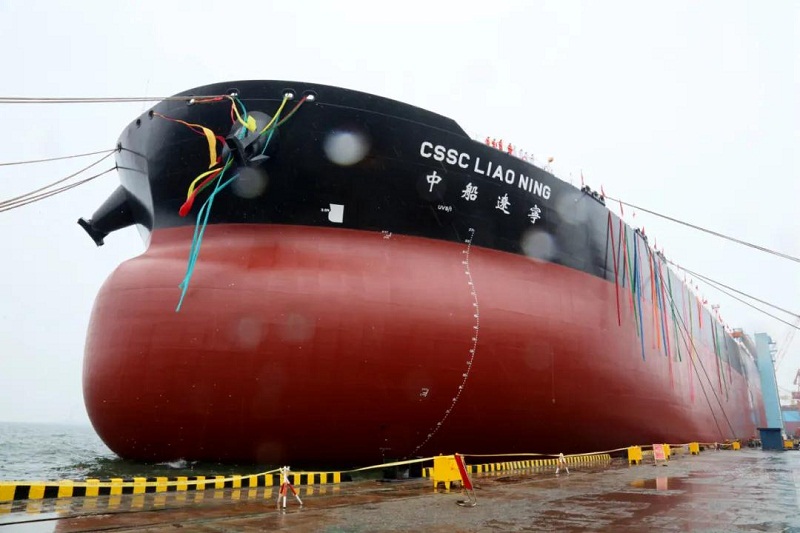 ????今天,中國船舶集團旗下大船集團為中船貿易所屬租賃公司建造的30.8萬噸超大型原油船“中船遼寧”號命名交付。“中船遼寧”號是大船集團自主開發(fā)的新一代極具市場競爭力的品牌船型。該船總長332.95米,型寬60米,最大載重量30.8萬噸,屬于無限航區(qū)船型,續(xù)航里程超過25000海里,在設計吃水20.5米可正常裝載200萬桶原油通過馬六甲海峽。