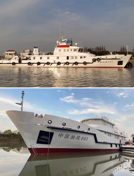 2020年12日26日,“中國(guó)漁政002”和“中國(guó)漁政003”正式交接兩艘船作為旗艦,自2021年1月1日起開(kāi)展長(zhǎng)江“十年禁漁”漁業(yè)執(zhí)法和保護(hù)。兩艘200噸級(jí)漁政船為姊妹船