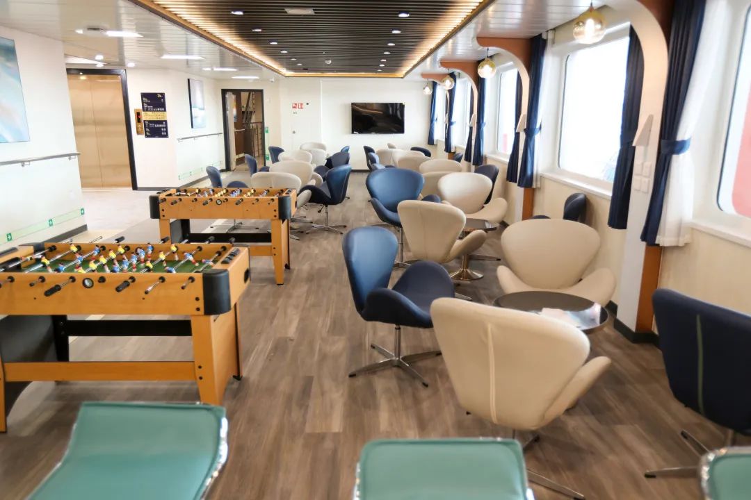 該船近日將開赴渤海灣,投入煙臺至大連的航線上運(yùn)營。屆時(shí)該船將成為目前國內(nèi)運(yùn)營的智能化程度最高、舒適度最好的一艘大型豪華客滾船。