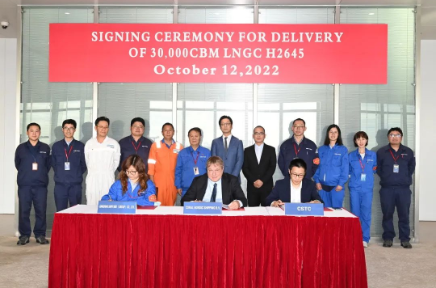 10月12日,中國(guó)船舶集團(tuán)旗下江南造船為荷蘭船東Anthony Veder公司設(shè)計(jì)、建造的30000立方米液化天然氣(LNG)運(yùn)輸船“Coral Nordic”號(hào)在上海簽字交付。