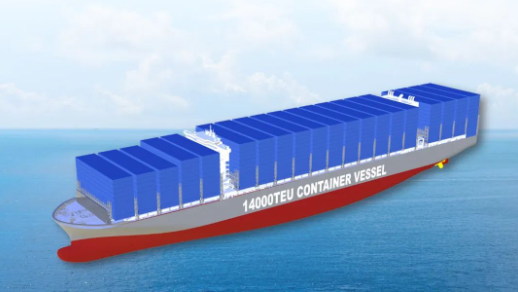 14000TEU甲醇燃料預(yù)留大型集裝箱船總長約336米,型寬 51米,型深30.2米,可裝載14170個20英尺標準集裝箱。采用最新設(shè)計理念,在常規(guī)燃料動力推進系統(tǒng)基礎(chǔ)上,預(yù)留甲醇燃料推進方案,可滿足船東后續(xù)綠色燃料改裝的需求。同時,配置脫硫塔及其他節(jié)能裝置,具有綜合能耗低、船舶快速性強和綠色環(huán)保優(yōu)等特點,總體性能達到世界先進水平,計劃于2026至2027年完工交付。