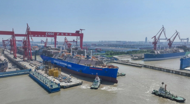 8月9日,中國船舶集團旗下滬東中華3艘第五代LNG船生產節(jié)點告捷,實現(xiàn)2船出塢、1船開工三大生產節(jié)點。