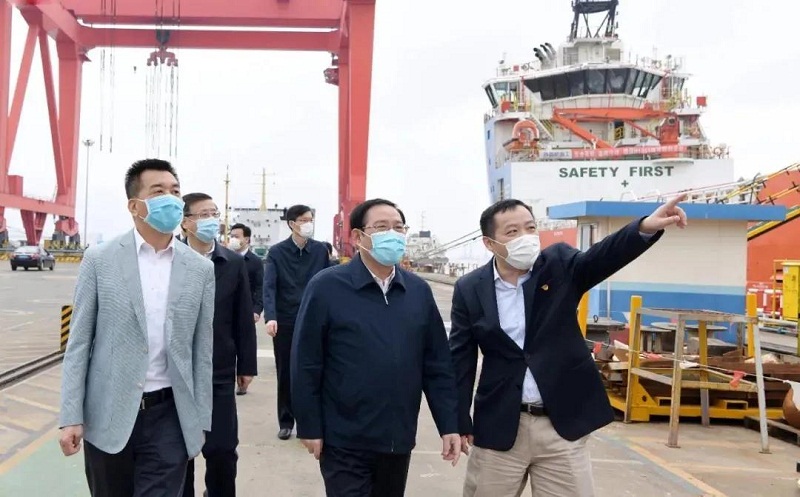 ????在現場,李強聽取了外高橋造船的遠景規(guī)劃以及高端海洋工程裝備制造相關情況介紹,詳細了解落實疫情防控主體責任和復工復產進展情況。