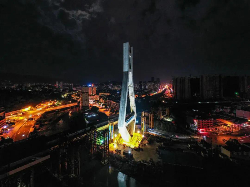 2020年4月10日,龍巖大橋的主塔曾順利完成69度的轉體施工。本次是該橋建設過程中完成的第二次轉體??傊?.36萬噸的大橋主塔和塔梁精準完成了21度的逆時針旋轉,整個過程歷時近1個小時。