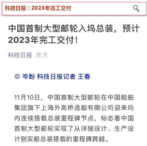 昨天(11月10日),中國船舶集團(tuán)旗下外高橋造船建造的中國首制大型郵輪,迎來里程碑節(jié)點轉(zhuǎn)入塢內(nèi)連續(xù)搭載總裝新階段的消息,在業(yè)界引起廣泛關(guān)注,也再次成功吸引新華社、央視新聞等各大央媒的目光!