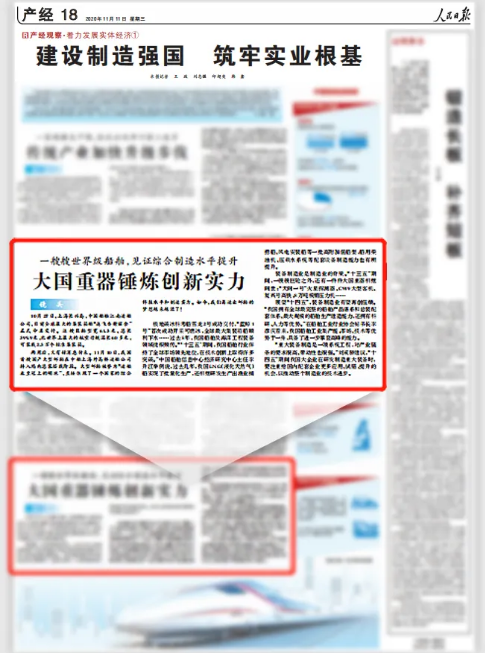 今天,人民日報產(chǎn)經(jīng)專版在《產(chǎn)經(jīng)觀察·著力發(fā)展實體經(jīng)濟(jì)》第一期報道《建設(shè)制造強國筑牢實業(yè)根基》中將鏡頭對準(zhǔn)了中國船舶集團(tuán)。