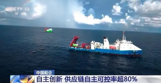 這是去年“奮斗者”號載人潛水器在馬里亞納海溝10909米處成功坐底的畫面,由中國船舶集團研制的“奮斗者”號載人潛水器是我國首臺具備全球海域載人進入能力的重要裝備。據(jù)測算,“奮斗者”號的國產化率超過了96.5%。同樣在民用船舶方面,整船的國產化率也有明顯提升。這是由中國船舶廣船國際完成的阿爾及利亞客滾船,具有完全的自主知識產權。