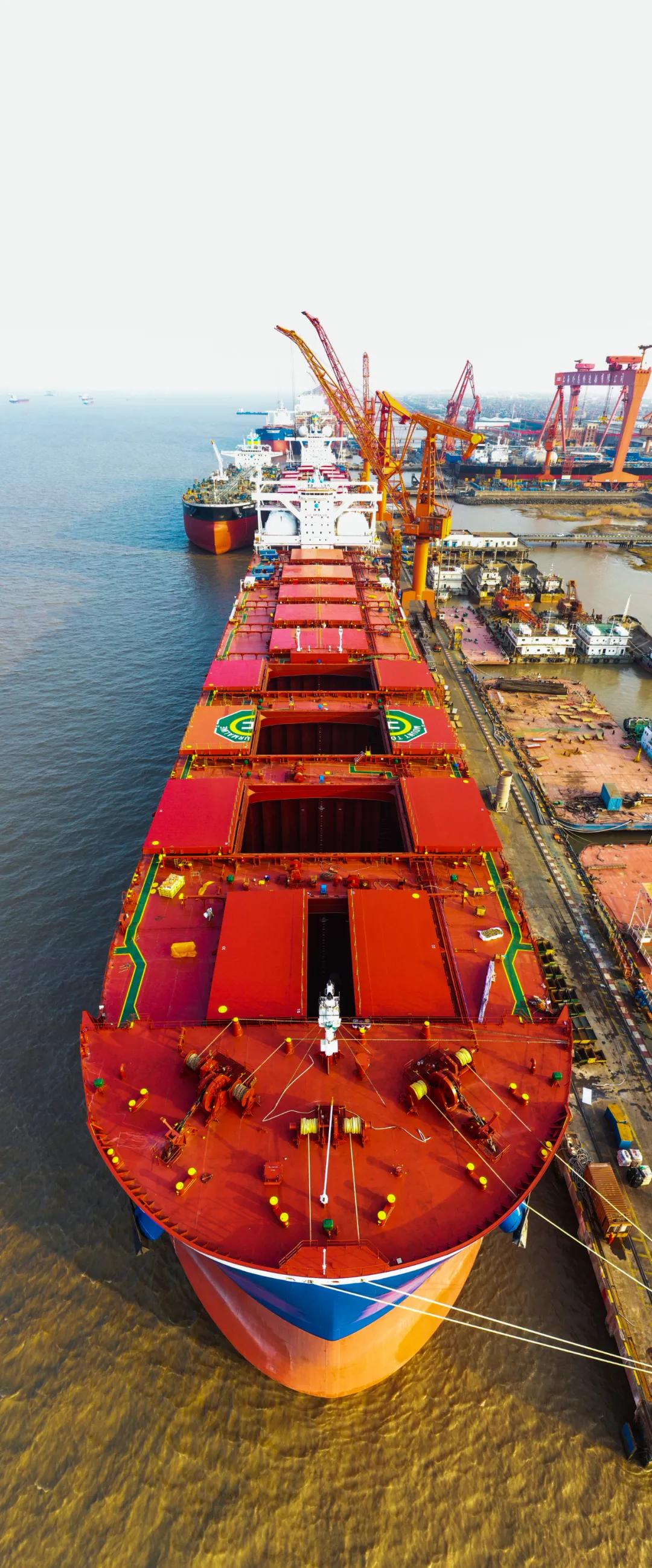 該船的交付,標(biāo)志著中國(guó)船舶工業(yè)在大型散貨船設(shè)計(jì)建造領(lǐng)域邁入“雙燃料”新時(shí)代,并擁有了引領(lǐng)國(guó)際大型散貨船市場(chǎng)綠色環(huán)保低碳發(fā)展趨勢(shì)的全新品牌船型。