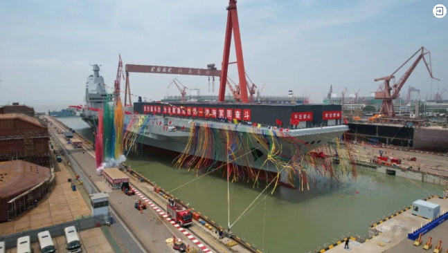 2022年6月17日,我國第三艘航空母艦下水命名儀式在中國船舶集團有限公司江南造船廠舉行。經(jīng)中央軍委批準,我國第三艘航空母艦命名為“中國人民解放軍海軍福建艦”,舷號為“18”。福建艦是我國完全自主設(shè)計建造的首艘彈射型航空母艦,采用平直通長飛行甲板,配置電磁彈射和阻攔裝置,滿載排水量8萬余噸。該艦下水后,將按計劃開展系泊試驗和航行試驗。福建艦順利下水標(biāo)志著我國海軍裝備現(xiàn)代化建設(shè)取得了又一重大的歷史性突破,對于進一步提升我國海軍維護國家海洋權(quán)益的能力具有重要意義。