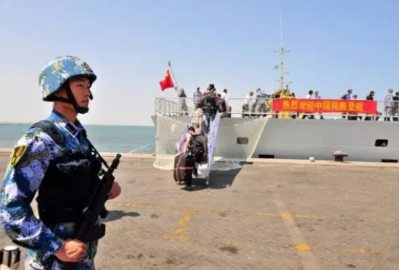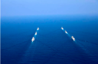 △今年2月,海軍第42批、第43批護航編隊在亞丁灣某海域舉行護航任務(wù)交接和分航儀式。