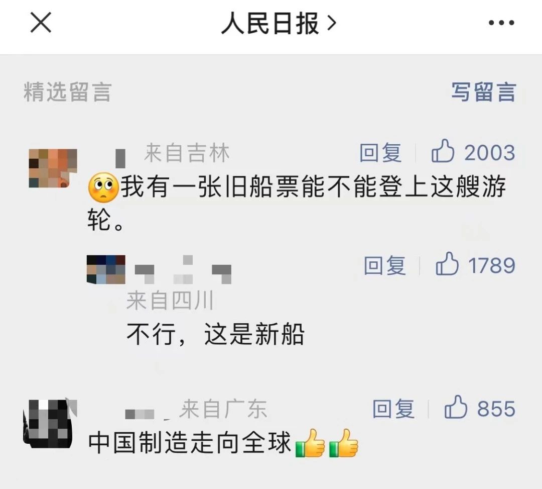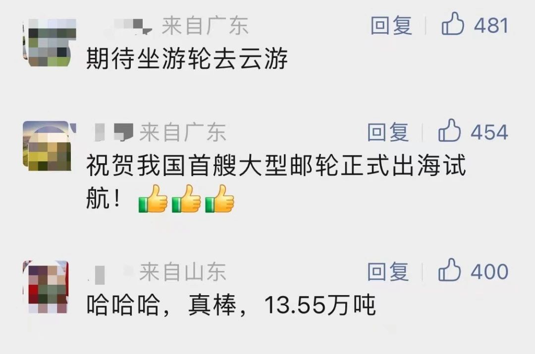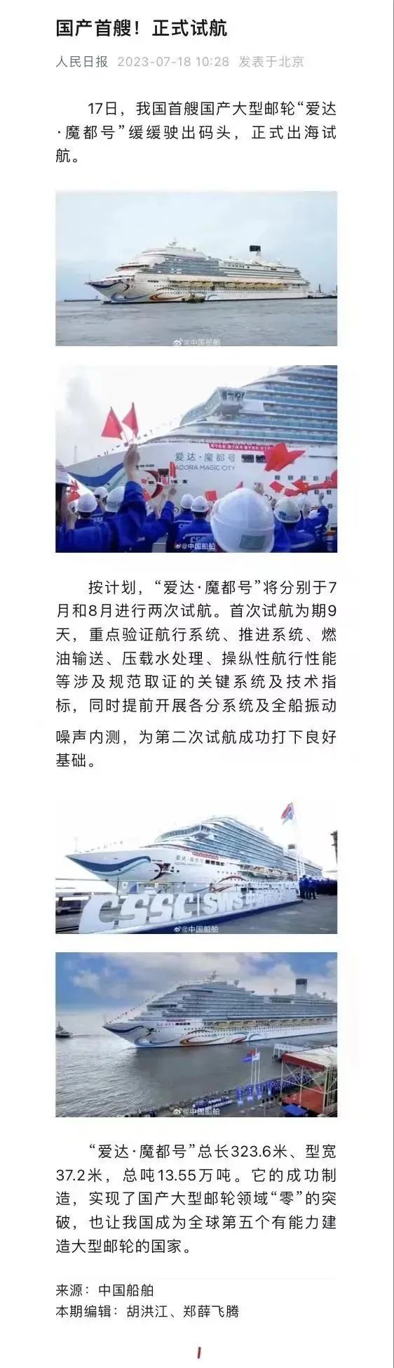 國產(chǎn)首制大型郵輪試航 各大媒體齊齊關(guān)注 ↓↓↓ 人民日報: 新華社: 央視新聞: 環(huán)球時報: 網(wǎng)友齊刷刷舉起小手手: 要上船!要上船! 讓我們一起期待 “愛達·魔都號” 試航凱旋!