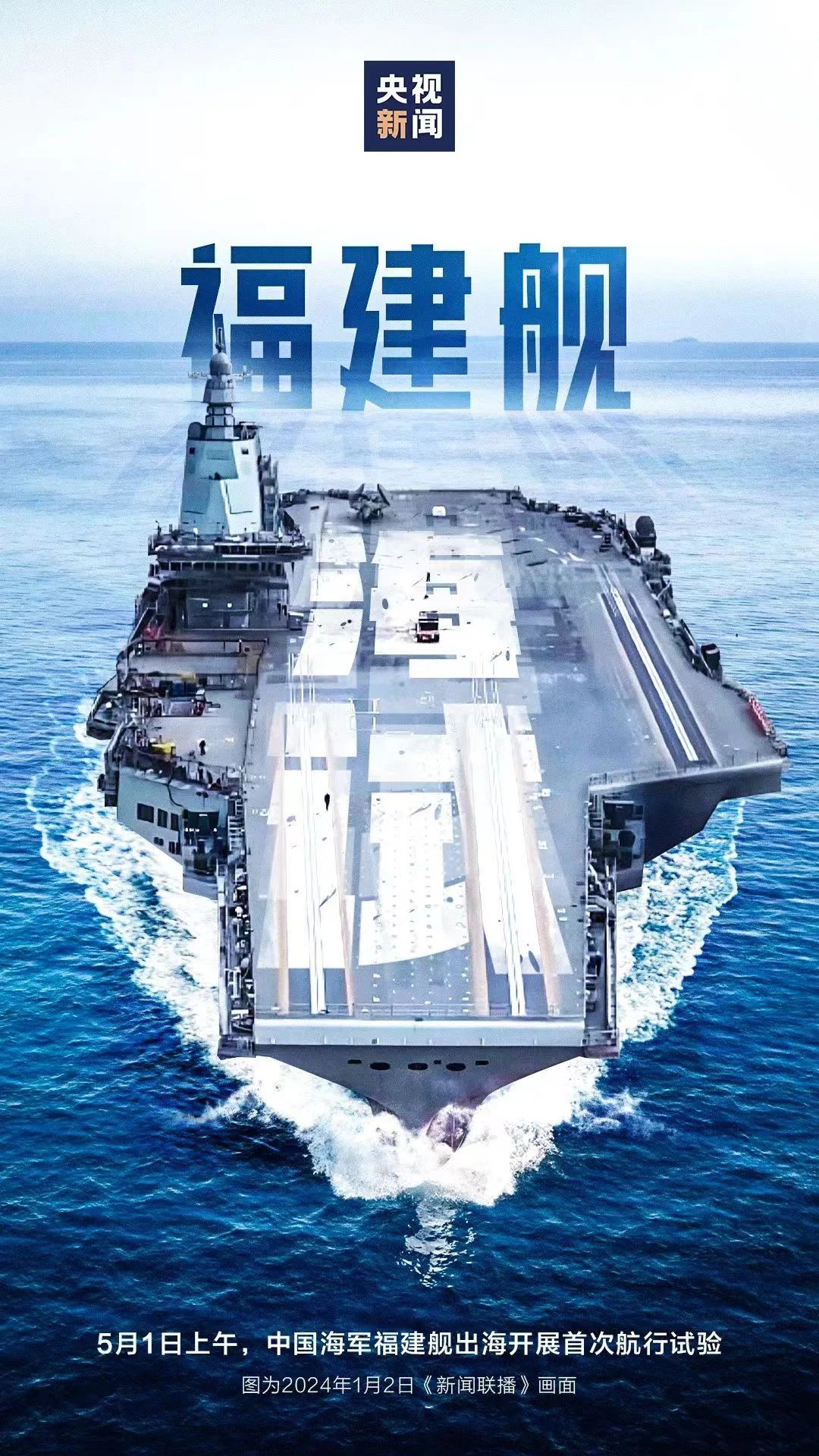 今天(5月1日)8時(shí)許,我國(guó)第三艘航空母艦福建艦從上海江南造船廠碼頭解纜啟航,赴相關(guān)海域開展首次航行試驗(yàn)。