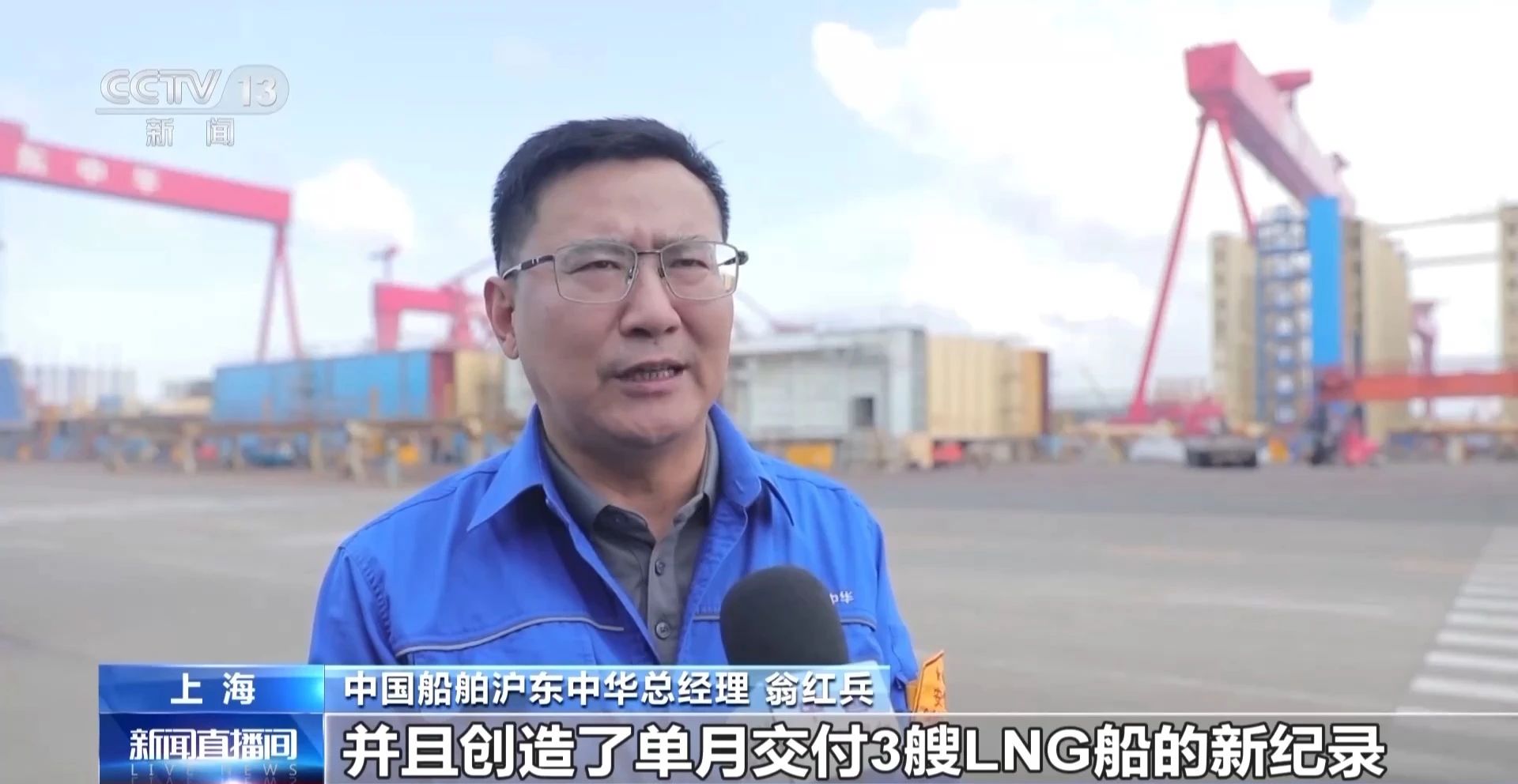 今年9月,在滬東中華造船廠,一個月就交付了3艘LNG船,創(chuàng)造了中國船舶建造史上單月交付的新紀(jì)錄。