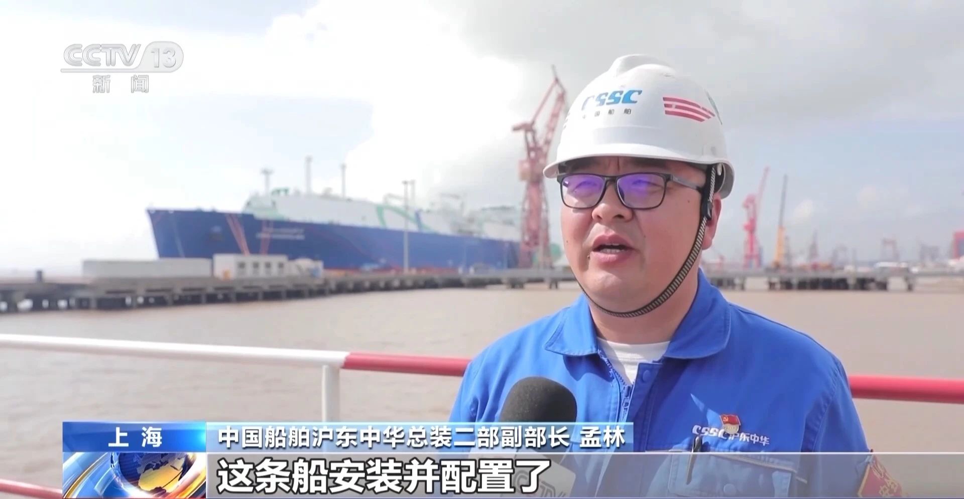 中國船舶滬東中華總裝二部副部長 孟林:這條船安裝并配置了全球首臺套再液化裝置,國內(nèi)自主研發(fā)的廢氣再循環(huán)系統(tǒng),能夠有效地提高能效,也能夠滿足國際上的T3排放標(biāo)準(zhǔn)。