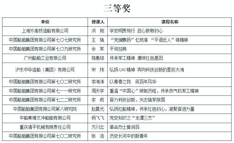除一等獎的“微黨課”作品,其他獲評優(yōu)秀的“微黨課”和專題黨課可以登錄集團公司黨?!爸写琫學”平臺首頁“中國船舶集團有限公司黨課評選優(yōu)秀作品展示”進行觀看。