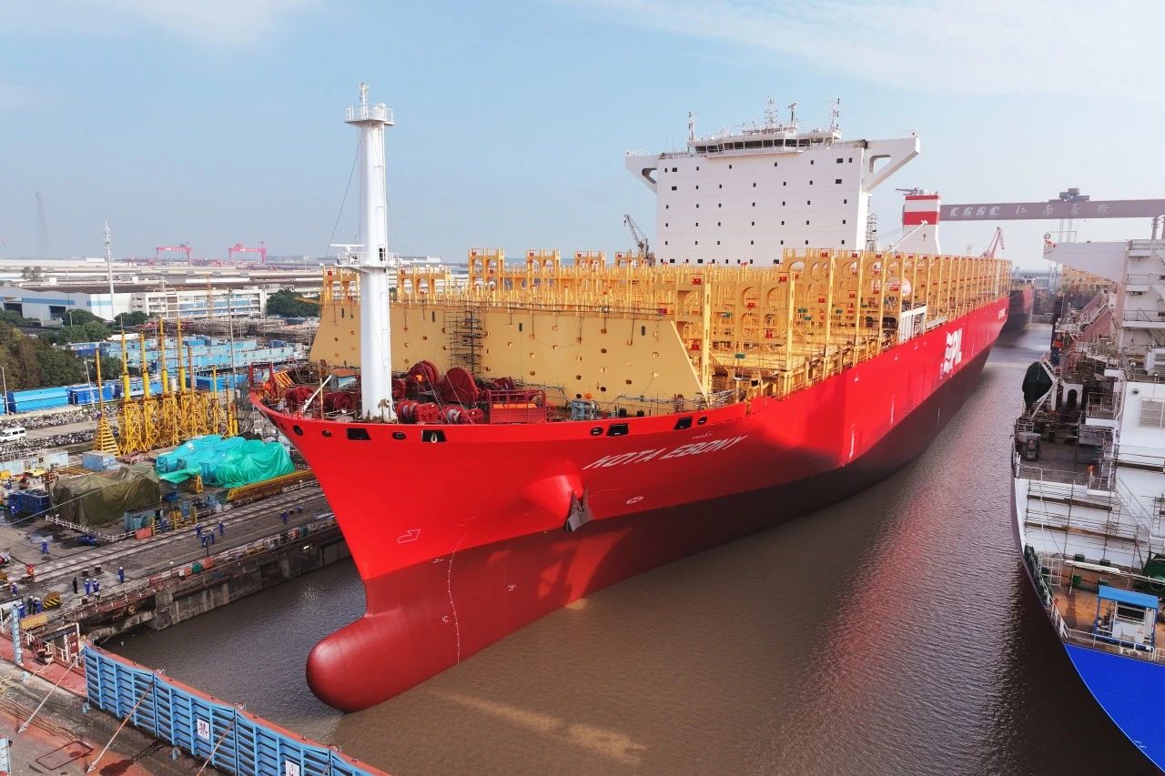 該船為江南研究院自主研發(fā)設(shè)計的“鯤”系列大型集裝箱船,采用LNG雙燃料動力,是新型高效、綠色、節(jié)能環(huán)保的船型。