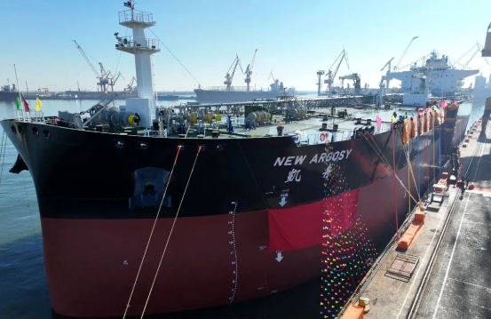 12月9日,中國船舶集團(tuán)所屬中國重工大連造船為招商輪船建造的11.5萬噸原油船“凱舟”號(hào)命名交付。這是大連造船山船重工今年交付的第15艘船舶,標(biāo)志著山船重工超額完成全年交船目標(biāo)任務(wù)。